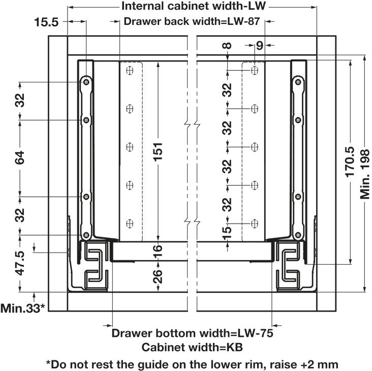 Alto Slim Drawer Set 500mm x Drawer Side Height 167mm - By Hafele