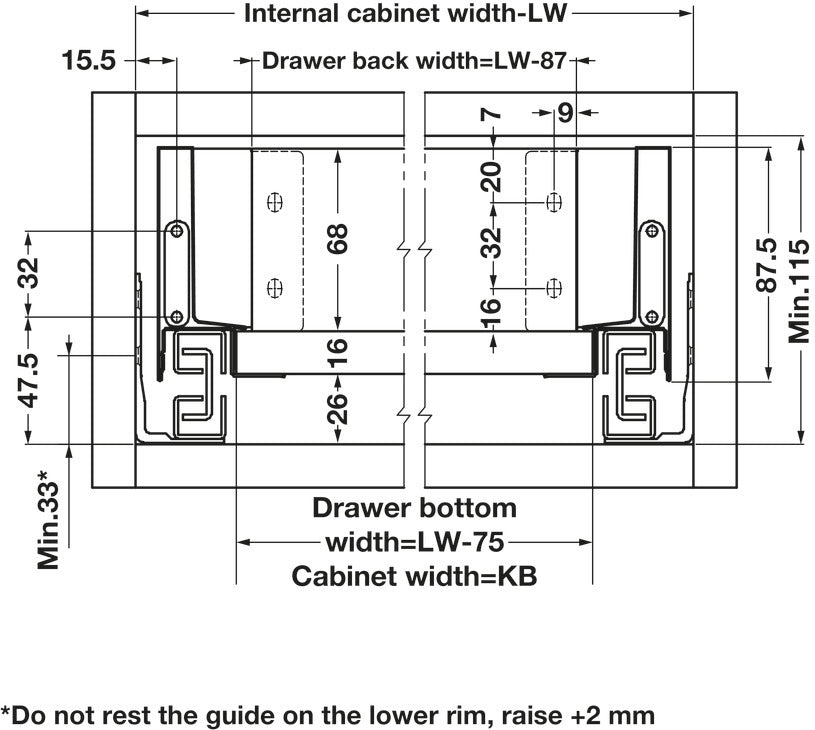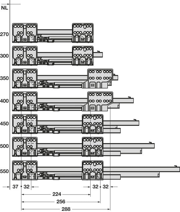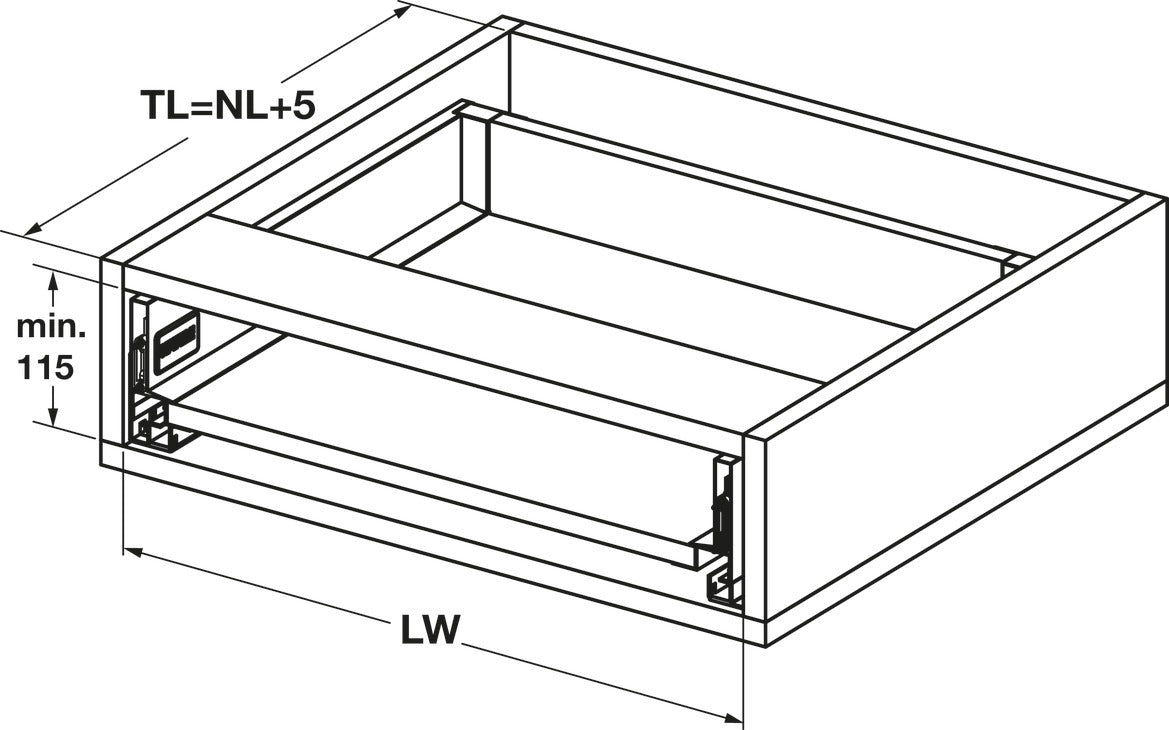 Alto Slim Drawer Set 500mm x Drawer Side Height 84mm - By Hafele