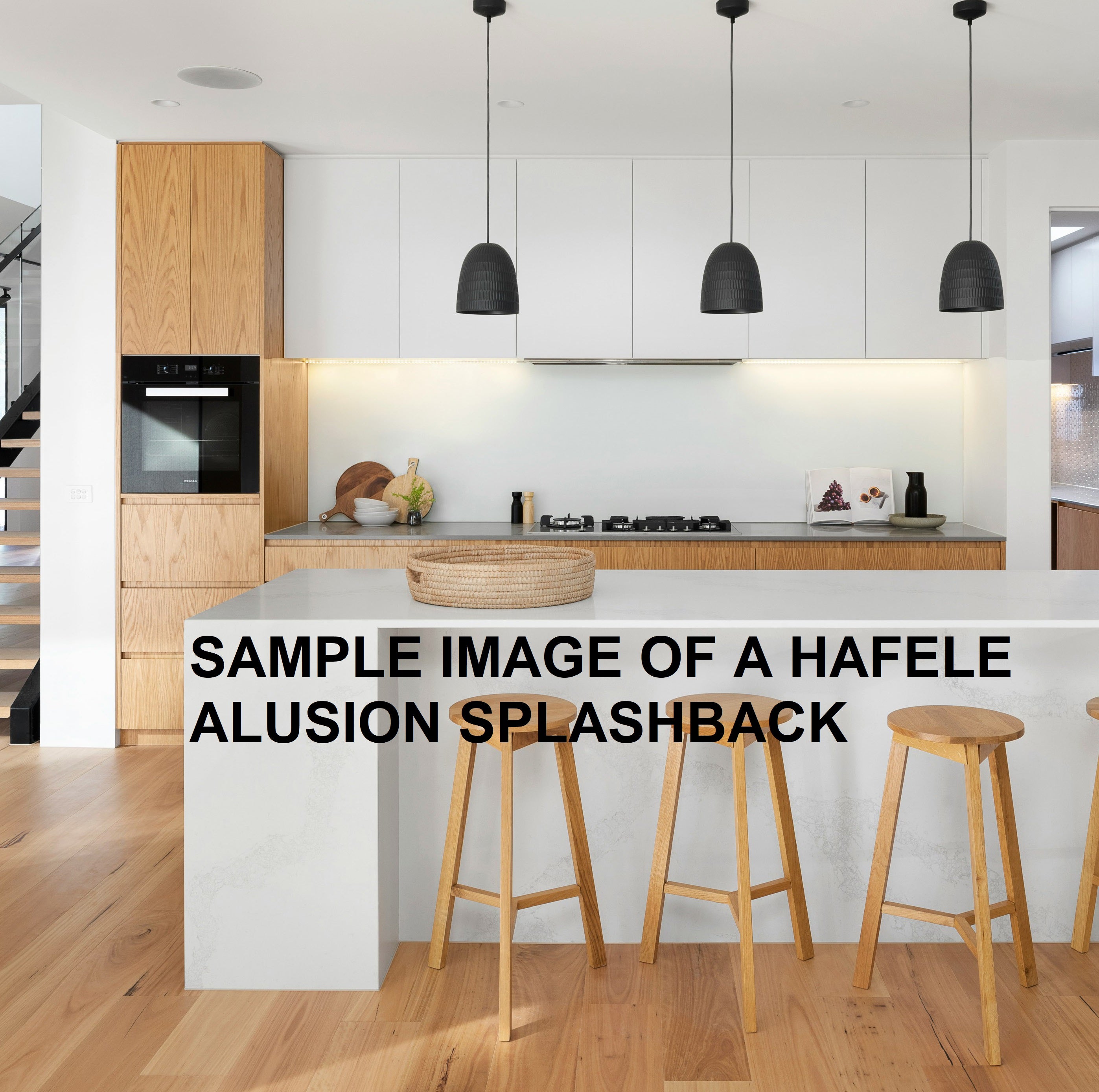 Hafele Alusion 4mm thick aluminium composite splashbacks are redefining the way we add style and ambience to the space between the benchtop and overhead cupboards. A myriad of colour choices allow you to add your personality to what has only been the domain of tiles and glass. Safe, hygienic and easy to install make Alusion splashbacks the perfect choice for any Kitchen, Laundry or other living space.