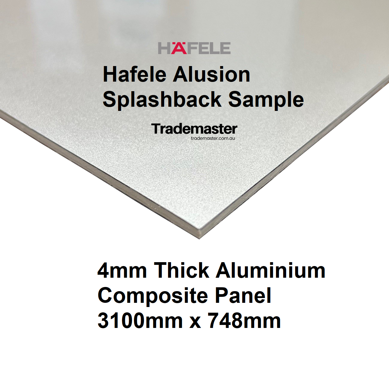 Hafele Alusion 4mm thick aluminium composite splashbacks are redefining the way we add style and ambience to the space between the benchtop and overhead cupboards. A myriad of colour choices allow you to add your personality to what has only been the domain of tiles and glass. Safe, hygienic and easy to install make Alusion splashbacks the perfect choice for any Kitchen, Laundry or other living space.