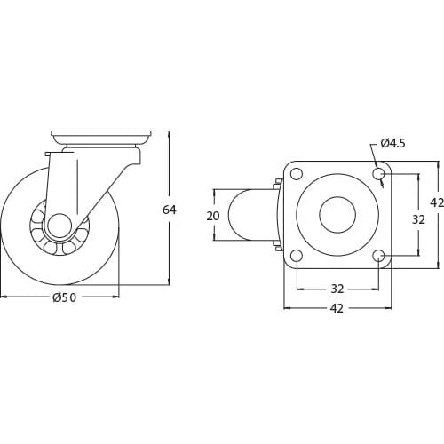 Skate Wheel Castor Polyurethane 50mm - Clear