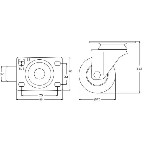 Skate Wheel Castor Polyurethane 75mm - Clear